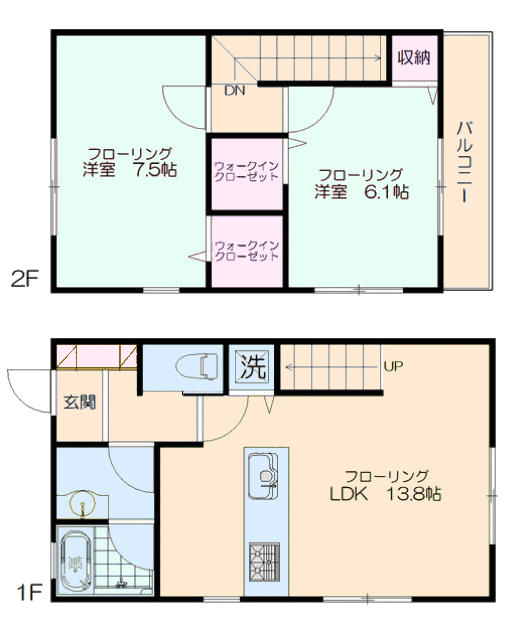 | 賃料 | ¥178,000 | 間取詳細 | (1階)LDK13.8、(2階)洋7.5、洋6.1 | ||