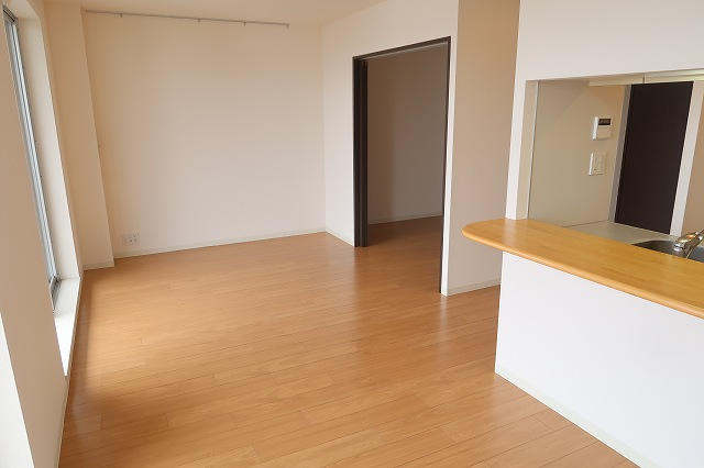 15.3帖のLDKは横長タイプでキッチン前にはダイニングテーブル、隣のスペースにはソファーと配置が容易に想像できる間取り!LDKに隣接するのが和室ではなく洋室になっているので、ここも使い易いポイントに思います!